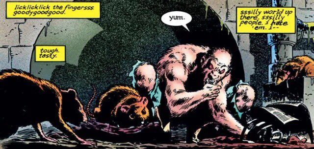 Combined with his Gollum-like personality and tragic backstory, it’s safe to say you couldn’t adapt Vermin without an R Rating. But he’s also a simple creature and I doubt you could create an interesting story that solely focuses on Vermin alone nor as a singular antagonist. Luckily there is still a place for Vermin to show up…